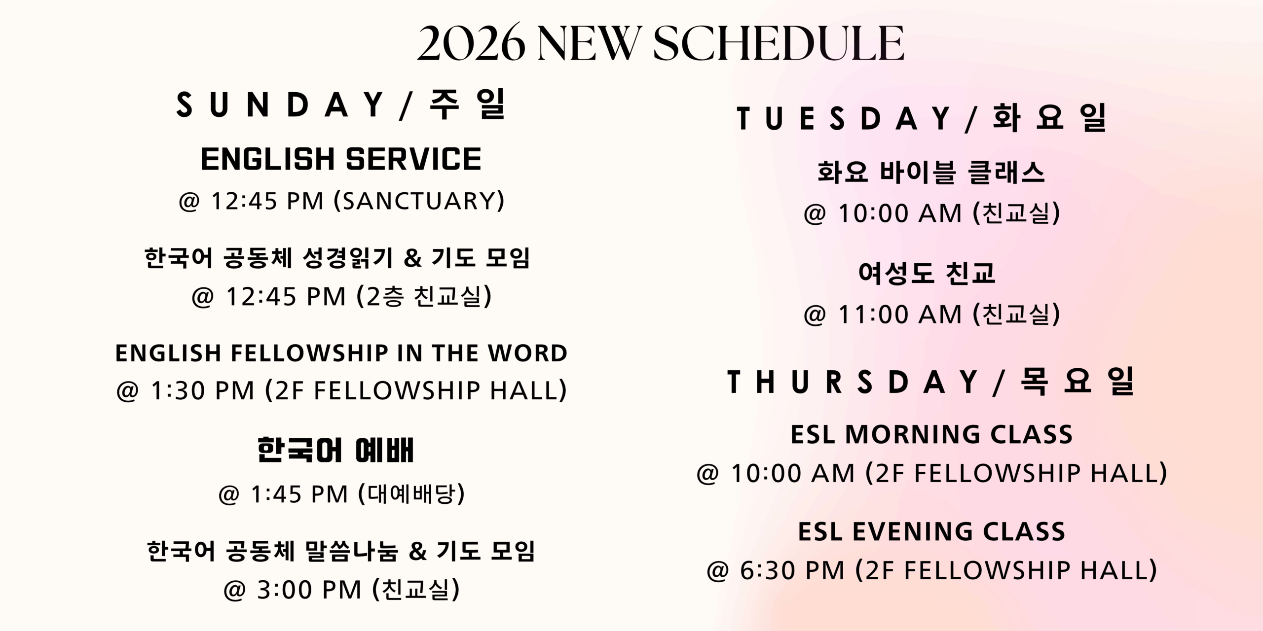2026 new schedule