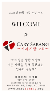 919-579-6939 • 910 Twyla Road • Cary, North Carolina 27519 pastor@carysarang.org