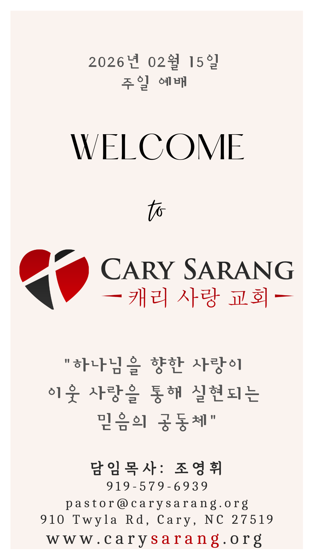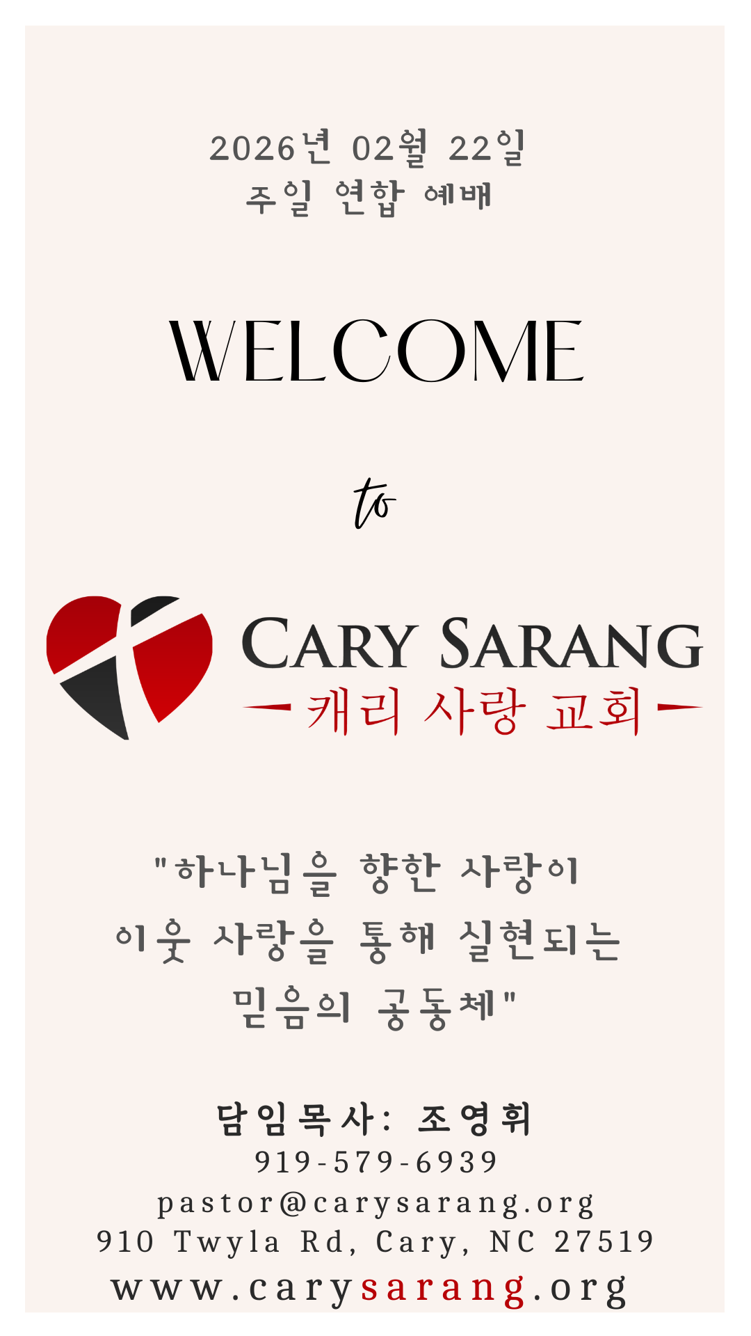 919-579-6939 • 910 Twyla Road • Cary, North Carolina 27519 pastor@carysarang.org